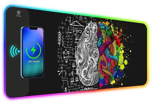 providing a unique atmosphere when playing games or working. The memory function helps to remember the light mode selected when it was last turned on ^^ Enjoy the joys of technologyJust place your phone, wireless charging earphones or watch in the designated wireless charging area and it will automatically start charging. The mouse mat is powered by Type-C, and a charging cable is included in the package Just plug in the Type-C cable to your power adapter or computer and you're ready to go. ^^ XXL Large 4MM Thickness Enhances Gaming ExperienceUpgrade your office desk or gaming station with our extra-large desk pad, measuring 800x300x4MM,.
