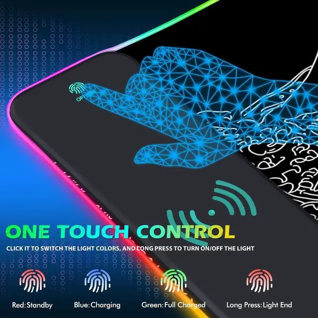 providing a unique atmosphere when playing games or working. The memory function helps to remember the light mode selected when it was last turned on ^^ Enjoy the joys of technologyJust place your phone, wireless charging earphones or watch in the designated wireless charging area and it will automatically start charging. The mouse mat is powered by Type-C, and a charging cable is included in the package Just plug in the Type-C cable to your power adapter or computer and you're ready to go. ^^ XXL Large 4MM Thickness Enhances Gaming ExperienceUpgrade your office desk or gaming station with our extra-large desk pad, measuring 800x300x4MM,.