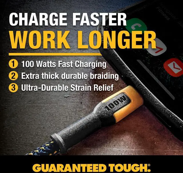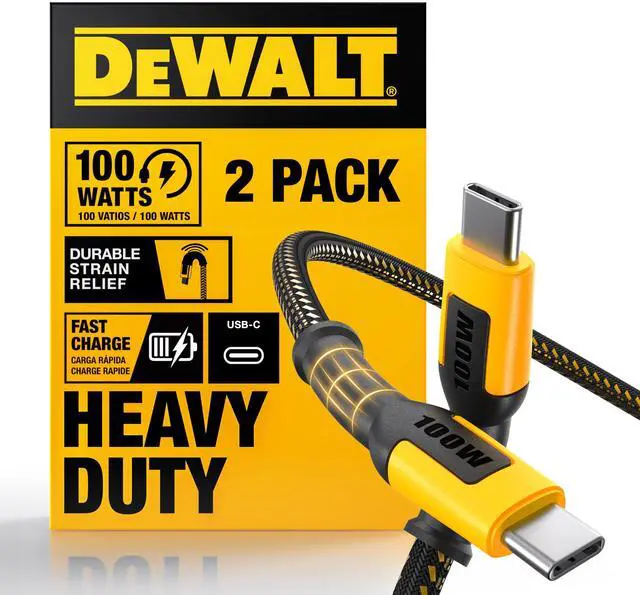 DEWALT Heavy Duty 2-Pack 100W USBC to USBC Cable, 4ft USB C to USB C Cable, Fast Charging Durable Braided TypeC Charger Cord for iPhone 16 15 Pro Max, MacBook Pro, iPad Air, Samsung S24 Ultra