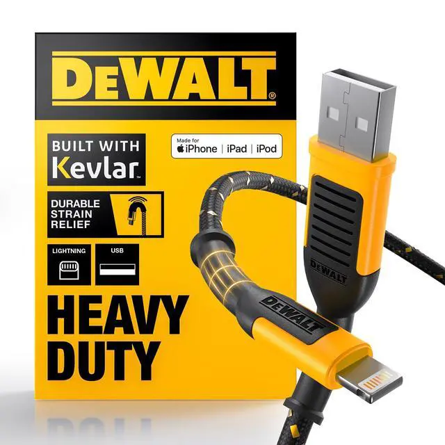 DEWALT Heavy Duty USB A to Lightning Cable [Apple MFi Certified] Durable iPhone Charger, Lightning Cables, Fast Charging iPhone Charger Cord Compatible w/iPhones 14/13/12/11 Pro Max iPad AirPods, 6FT