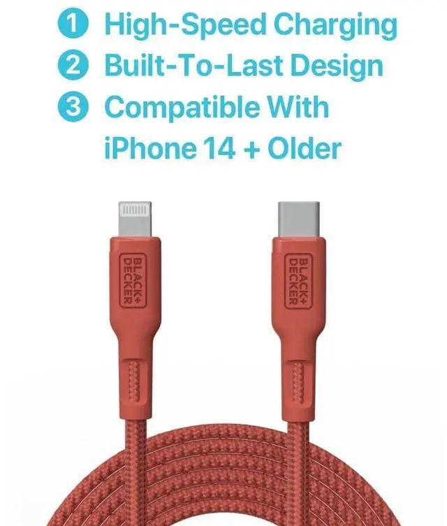 High-Speed Charging Experience lightning-fast charging with our durable and reliable iPhone charging cable ^^ Compatible with All Lightning Devices Our iPhone charger USB C is universally compatible with all Lightning devices, ensuring seamless connectivity and hassle-free charging for your iPhone, iPad, and more ^^ Built-to-Last Braided Nylon Crafted with a durable and thick-braided nylon material, our lightning charger cables for iPhone are built to withstand daily wear and tear, providing long-lasting durability and tangle-free usage ^^ Lifetime of Bending and Flexing Our iPhone USB C charger is engineered with superior strain relief to endure a lifetime of bending and flexing, making it the perfect choice for those who are constantly on the go and in need of a reliable charging solution ^^ 10-Year Guaranteed Warranty We stand behind the quality of our USB C lightning cable, which is why we offer a 10-year guaranteed warranty.