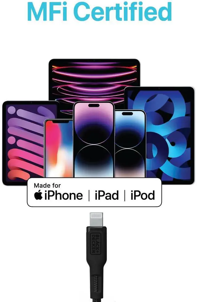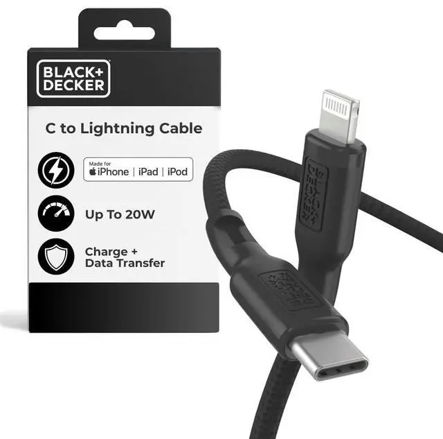BLACK+DECKER USB C to Lightning Cable - Fast Compatible iPhone Lightning Cable - Durable Braided Type C iPhone Charger Cord - for Travel and Daily Use - Multiple Colors and Lengths - 6ft