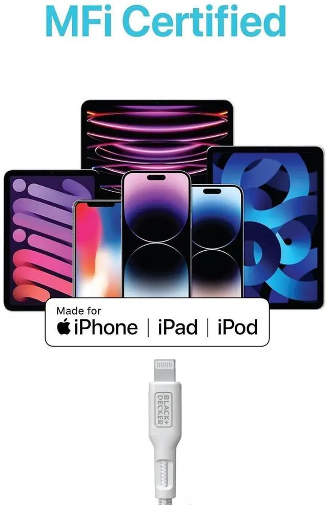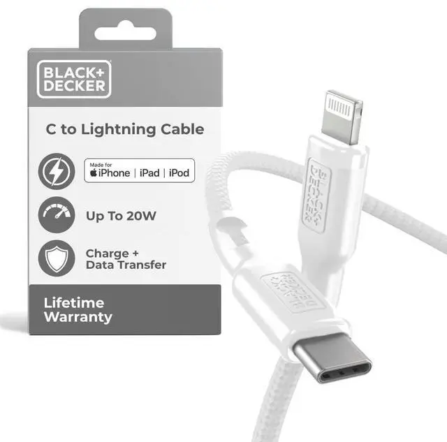 BLACK+DECKER USB C to Lightning Cable - Fast Compatible iPhone Lightning Cable - Durable Braided Type C iPhone Charger Cord - for Travel and Daily Use - Multiple Colors and Lengths - 3ft