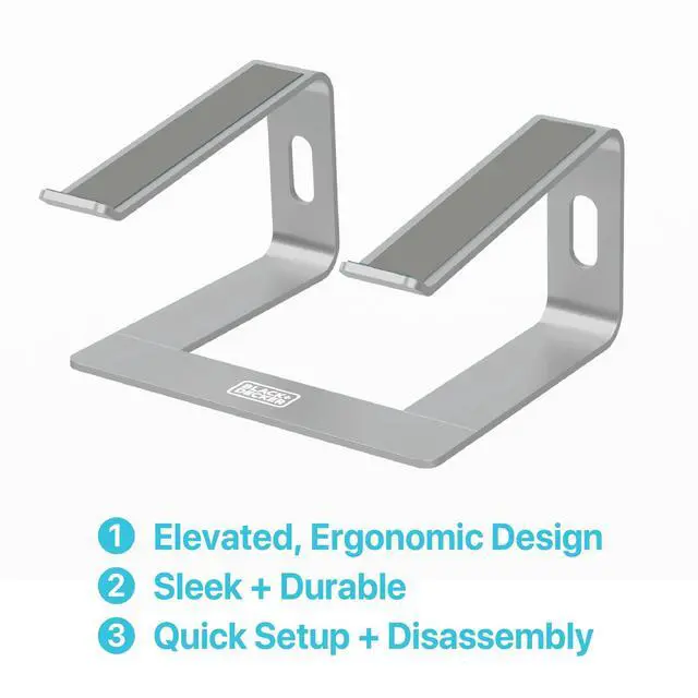 BLACK+DECKER Laptop Stand for Computer Desk, Ergonomic Laptop Stand for Desk, Lap top Riser Compatible with MacBook Notebook, Lap top Holder, Durable Aluminum Computer Riser Accessories, Silver