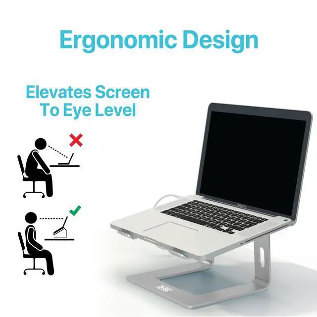 • Sleek and Durable Aluminum Construction Crafted with high-quality aluminum, this laptop stand offers a sleek and modern design that is built to last, ensuring stability and durability