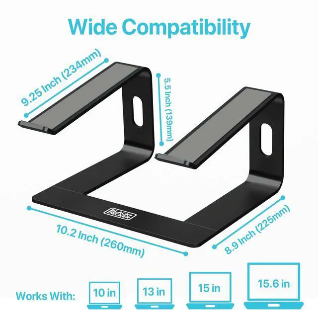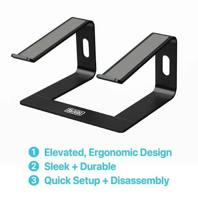 BLACK+DECKER Laptop Stand for Computer Desk, Ergonomic Laptop Stand for Desk, Lap top Riser Compatible with MacBook Notebook, Lap top Holder, Durable Aluminum Computer Riser Accessories, Black
