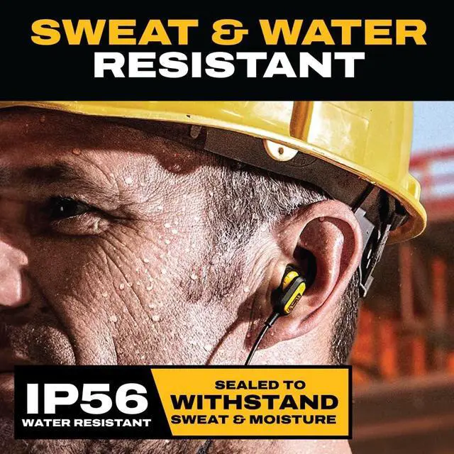 Playback Controls: Quickly and easily adjust the volume on your neckband Bluetooth earbuds' and find the perfect song on your playlist without picking up your phone thanks to the in-line controls ^^ Stay Protected Wherever You Listen With Dust/Water Resistance: Rated IP56 for dust and moisture resistance, these DEWALT Bluetooth headphones are ideal for dusty and sweaty work conditions ^^