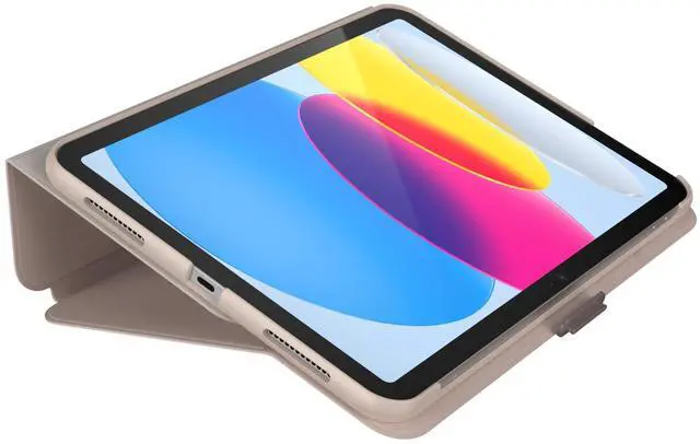 BALANCE FOLIO is a slim and chic tablet case. Providing superior durability and protection, an interior liner helps protect your screen against scuffs and abrasions on your tablet, while the outer shell shields against bumps and dents when dropped up to 4 feet. A secure latch closure also keeps everything in place for peace of mind in the event of a fall. Protective cover includes a magnetic camera shield that covers your lens and easily retracts when you need to snap a photo. Plus, this cover converts into a convenient typing and viewing stand.