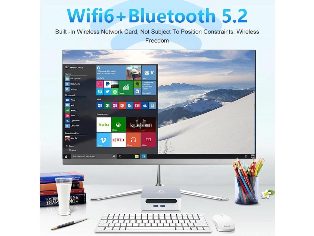 - Versatile Connectivity: Stay connected with advanced WiFi 6 and Bluetooth 5.2 capabilities, ensuring high-speed internet and smooth device pairing for all your peripherals, whether you're using this AMD mini PC for gaming or as an office PC.