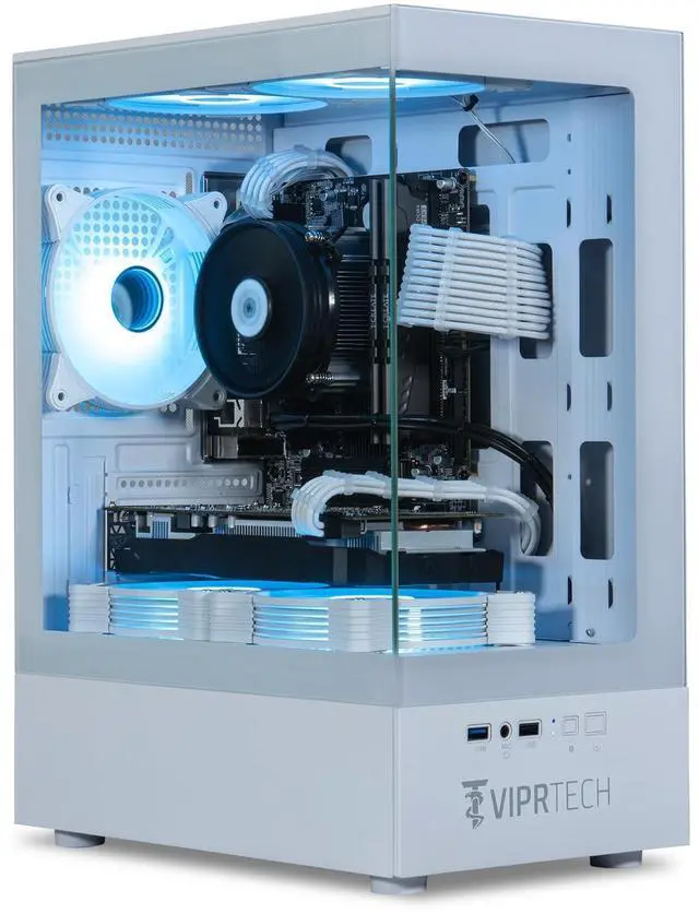 System: Intel i5-9400f (6-Core @ 2.9GH z / 4.1GH z Turbo) ^^ GeForce GTX 1660 Super 6GB Graphics ^^ 16GB DDR4 RAM ^^ 500GB Solid-State Drive (SSD) ^^ White Braided Cable Extensions ^^ Genuine Windows 11 Pro ^^ RGB Lighting enabled white case ^^ Showcase your internals with the built-in RGB lighting system, a must have for any gaming PC and sure to make your rig stand out. Controlled via a button on the case. ^^ Enjoy insanely fast bootup times with the included 512GB Boot SSD, up to 30x faster than a traditional hard drive. Easily add additional storage if desired. ^^ Great for streaming, video editing/rendering, gaming and anything else you can throw at it. Optimized for high FPS and can run most games. ^^ Every ViprTech PC is built by hand in the USA and is stress-tested extensively before shipping. We stand behind our product and include a free 1 year waranty.