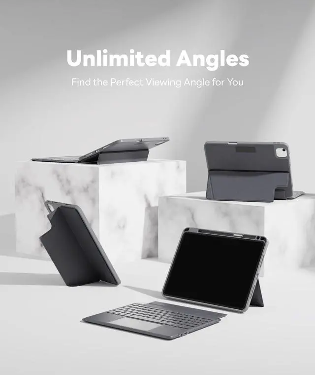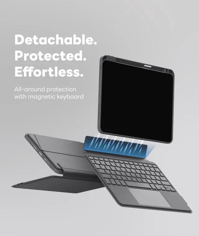 Magnetic Detachable Keyboard - Securely attaches to the protective case using a strong magnetic strip. You can detach and store the keyboard separately, leaving the case and back stand. This setup allows you to place the iPad on your lap for reading, watching videos, or drawing. Switching between iPad and Laptop modes becomes effortless.