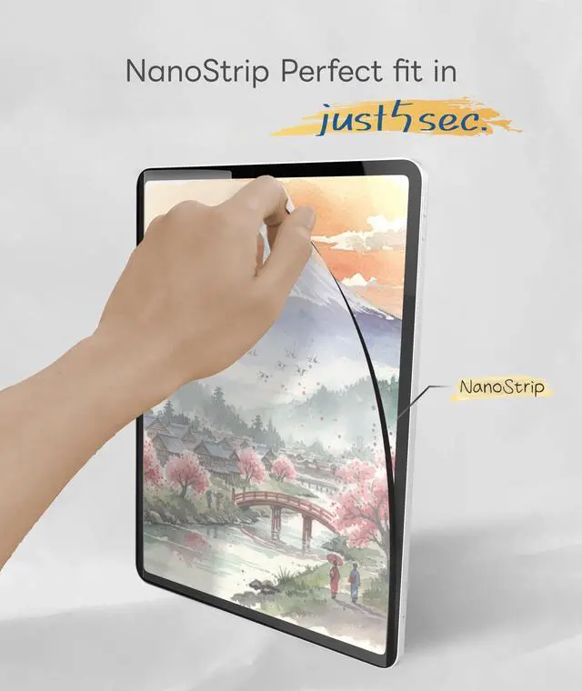 Compatibility Designed for iPad Air 5/4 and iPad Pro 11(1-4th). The protector is the perfect match for Apple Pencil, enhancing your writing and drawing experience. ^^ Bubble-Free Installation No need for alignment tools; Nano Strip Attachment ensures quick, stable, and bubble-free application every time. ^^ Detachable & Reusable Uses Nano Strip Attachment that adheres firmly without magnets, preventing lift from magnetic cases. Easily removed and reapplied many times.