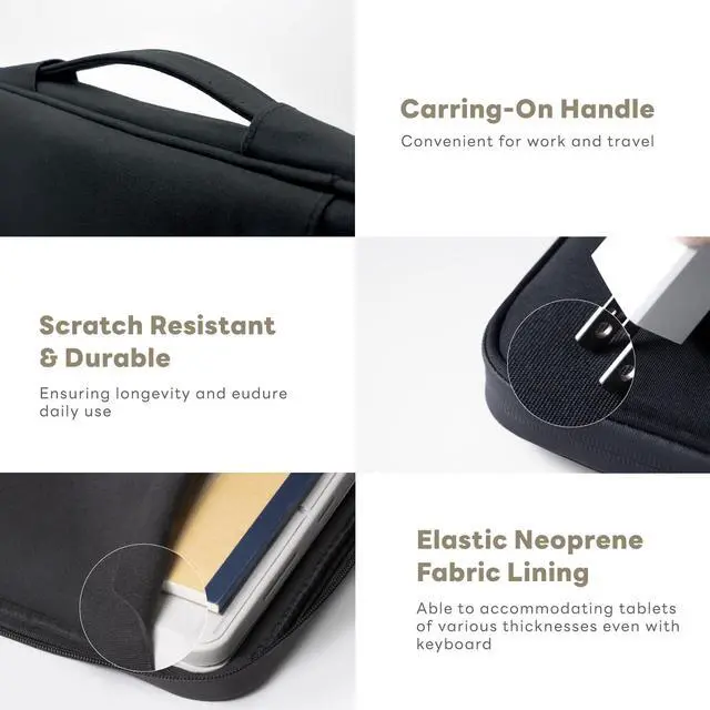 Perfect For iPad Pro M4 13 Inch, iPad Air M2 13 Inch, iPad Pro 12.9", MacBook Air 13" ^^ Fully Water-Repellent Surface and Zippers - Featuring specially selected water-repellent zippers and fabrics, it's the only fully water-repellenttablet carring bag on the market. ^^ Elastic Neoprene Fabric Lining - Able to accommodating tablets of various thicknesses even with Keyboard. ^^ Multiple Compartment - Maintain accessories in order and keep all your essentials tidy and accessible. Whether it's your mouse, charging cables, keyboard, stylus, or books, everything can be properly stored in eiP Slim Tablet Bag.