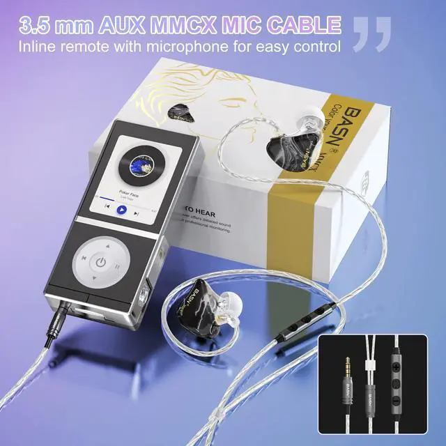 [(2 Upgraded Audio & Mic Cables)] You will get two different 4.9ft long MMCX detachable cables to connect to the earbuds: one is the upgraded silver plated cable for IEM use, another one upgraded mic cable for phones with volume and plays control