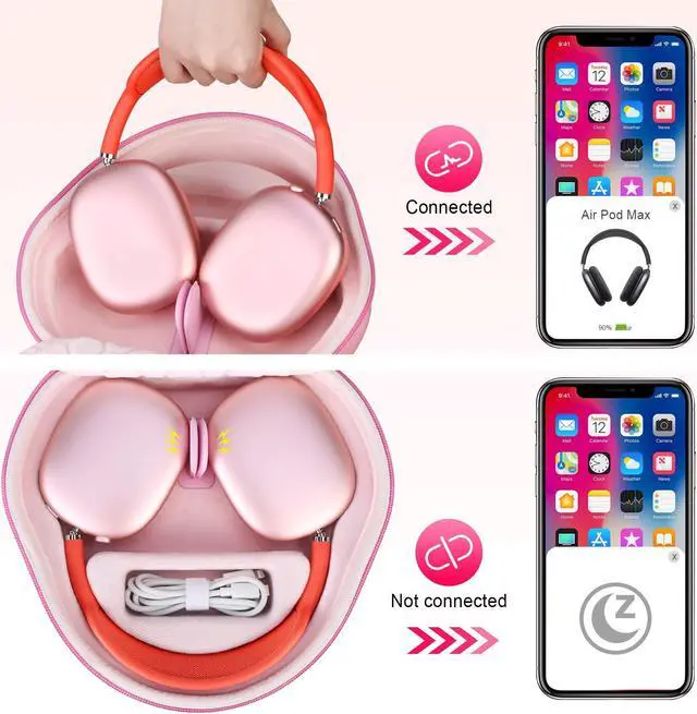 Sleep Mood: This airpods max case has the magnetic device on the bottom, alllows your AirPods Max into sleep mode in ultra-low-power state, The Bluetooth can be automatically disconnected when you put your AirPods Max in this carrying case and connected immediately when you take AirPods Max out, convenient for daily use.
