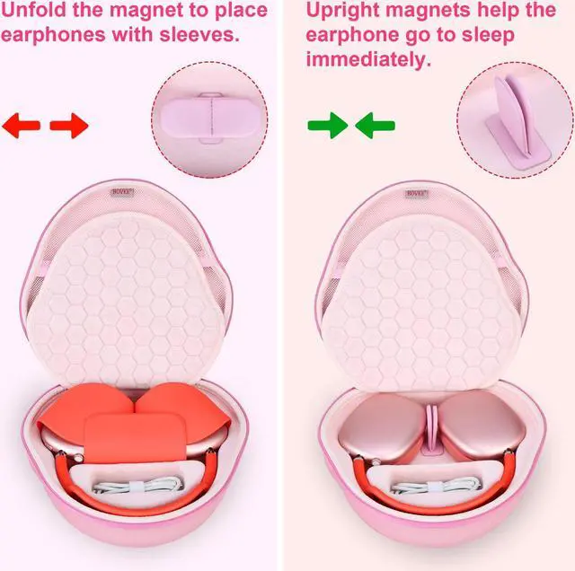 BOVKE Hard Carrying Case with Sleep Mode for Apple AirPods Max Wireless Over-Ear Headphones, AirPods Max Protective Portable Storage Bag with Mesh Pocket for Headphone Accessories, Pink