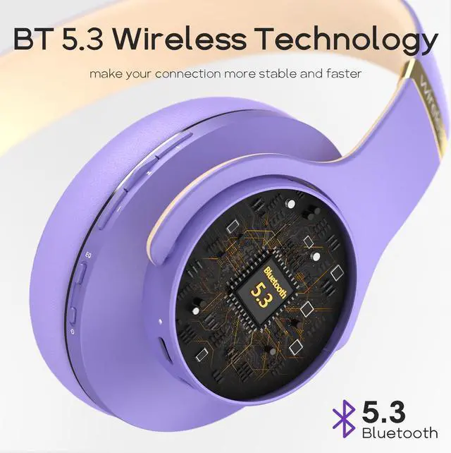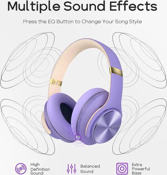 DOQAUS Bluetooth Headphones Over Ear, 90 Hours Playtime Wireless Headphones with 3 EQ Modes, Noise Isolating HiFi Stereo Headphones with Deep Bass, Mic, Soft Earpads for Cellphone/PC (Purple)