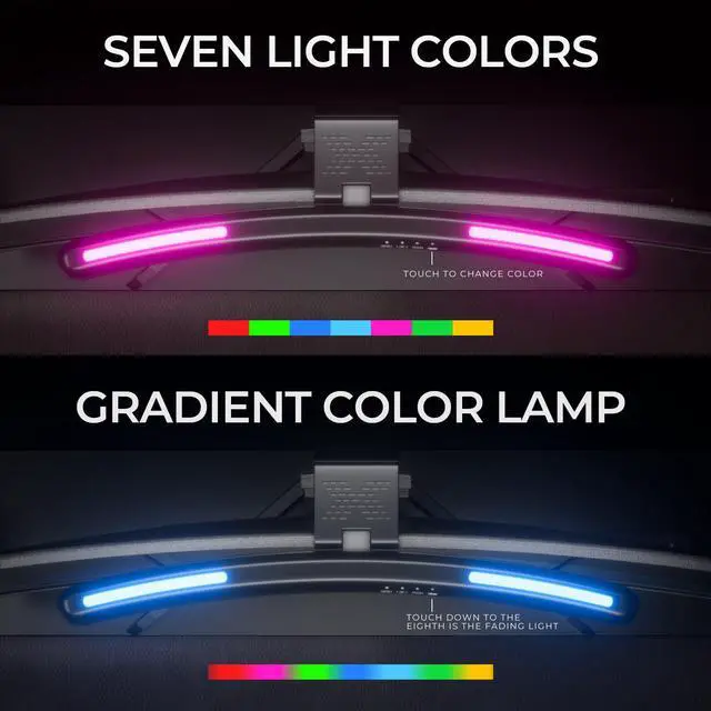 [(RGB Monitor Backlight)] Geisofu dual light source monitor light bar curved has 7 Colors RGB backlight on gaming desk led lights,the ultimate vivid RGB light of computer monitor light bar with backlight creates great atmosphere and enhances your immersive experience of movie viewing and gaming. The wonderful Geisofu curved monitor light bar provide a lively and imme feel.Timed computer monitor light with RGB backlight is the perfect solution for gaming enthusiasts.