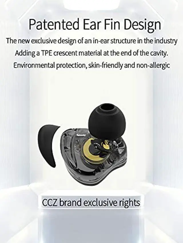 [(Exclusive design of eartips and earfins)] The eartips of CCZ Melody in ear monitors adopt TPE material and soft and environment-friendly TPE fin is added to the rear of cavity, providing a more comfortable, stable and lighter experience.