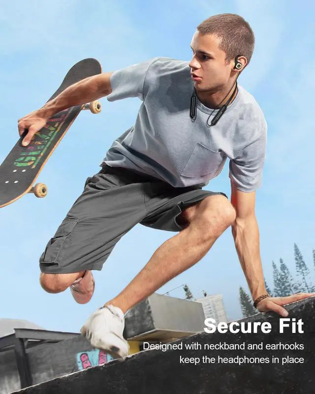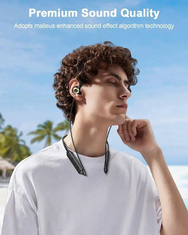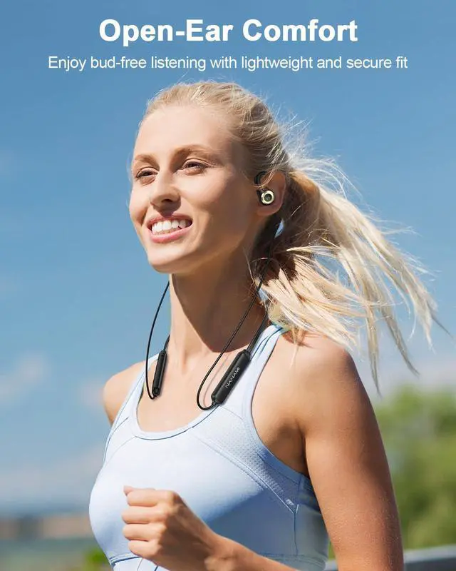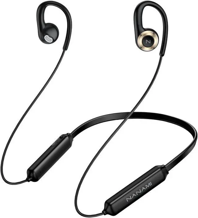[(Open-ear Headphones Design)] : NANAMI new bluetooth headphones with ear hooks, integrates an open ear design with wired neckband, not only allows you to enjoy worry-free workouts without the concern of falling off or missing, but also enjoy music without missing the sound of your surroundings. Furthermore,it will avoid the discomfort of in-ear headphones with our bud-free design,providing long time comfortable wearing.