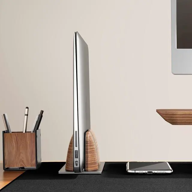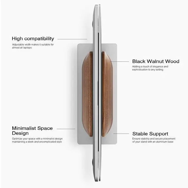 Premium Materials: Crafted with black walnut wood and aluminum, this macbook pro stand combines the natural charm of walnut with the abundance and allure of aluminum, making it a visually appealing choice.