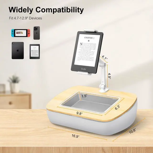 ^^ Universal Compatibility: The clamp holder fits any tablet, smartphone, or eReader from 4.7" to 12.9".