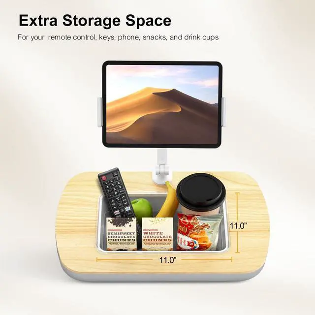 ^^ Tray Design: The tray features a built-in storage box for storing remote controls, Bluetooth headsets, snacks, and phones. The wood finish surface is easy to clean, and the bean bag cover can be removed and washed separately.