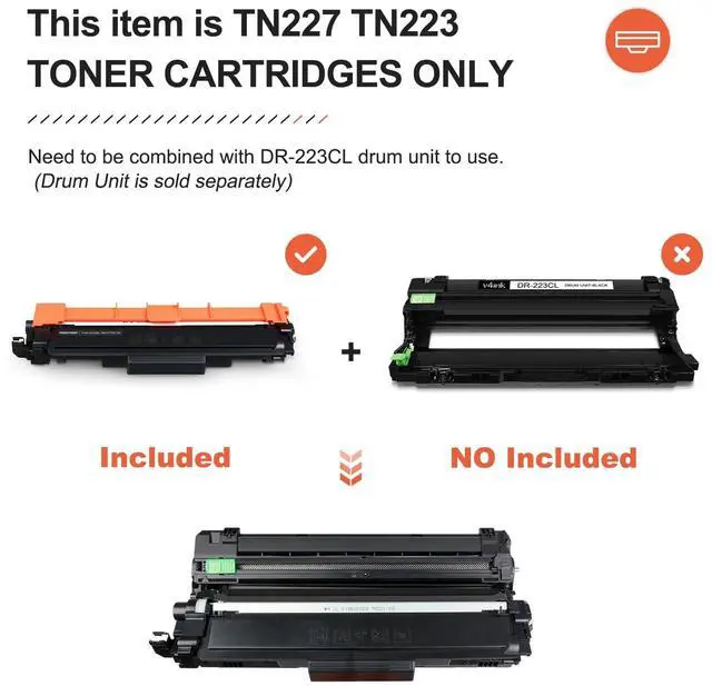 ^^ [True-to-life Colors] Refilled with premium toner formula, v4ink remanufactured cartridges print true-to-life colors, give your printed documents a professional and impactful touch at affordable input. ^^ [Warm Tips] After installing the tn227 high yield toner cartridges, your printer may display "No Toner" "Cannot Detect" "Cartridge Error" message, please reinstall the cartridges to make sure the chip of the toner cartridge is in good contact with the printer.
