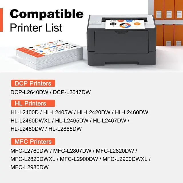 ^^ Suitable Printer List: Brother DCP-L2640DW, DCP-L2647DW, HL-L2400D, HL-L2405W, HL-L2420DW, HL-L2460DW, HL-L2460DWXL, HL-L2465DW, HL-L2467DW, HL-L2480DW, HL-L2865DW, MFC-L2760DW, MFC-L2807DW, MFC-L2820DW, MFC-L2820DWXL, MFC-L2900DW, MFC-L2900DWXL, MFC-L2980DW Printer.