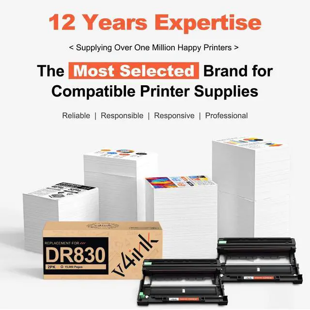 ^^ Reliable printing partner: Available Page yields up to 15, 000 per drum unit based on 5% coverage (letter/A4) and provide a sharp text, bold blacks and crisp graphics. ^^ V4INK DR830 DRUM is special own-patent item designed for brother printers, under OEM manufactured standard, with up-graded black toner, never hurt and will work perfectly with your printer. ^^ Items is auto-produced strictly under ISO 9001 and ISO 14001 STMC standard, with over 1.40 black uniform density, firm fixation, sharp printout, which are totally comparable to the originals. All batches are sampled for 7 producing tests, including printing quality inspection, life test, endurance test, torsional test and drop test, fully adapts to express transportation and the American climate.