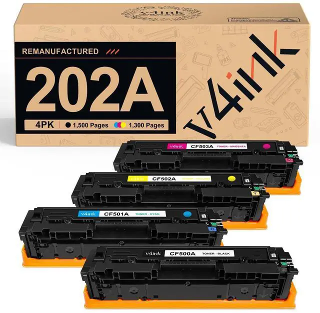^^ Package Includes: 4 packs of v4ink 202A 202X (CF500A CF501A CF502A CF503A) Remanufactured With Chip New Version toner cartridges (Black Cyan Magenta Yellow) and an install instruction. ^^ Green for the