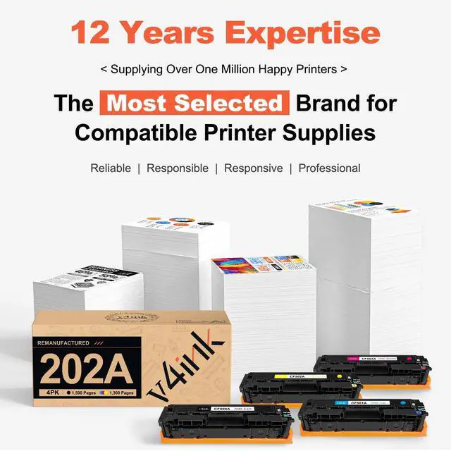 Quality Control: v4ink, founded in 2013, is a leading online retailer of compatible toner cartridges in the USA; Our toner cartridges are produced under ISO 9001 and ISO 14001 STMC standards, each batch undergoes 7 rigorous tests, including printing quality, life, and endurance tests, fully adapting to express transportation and American climate conditions.