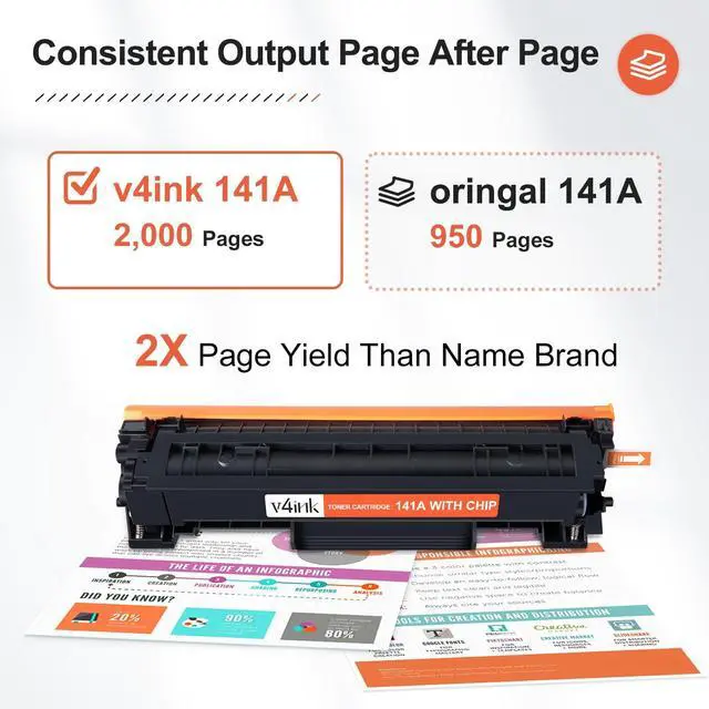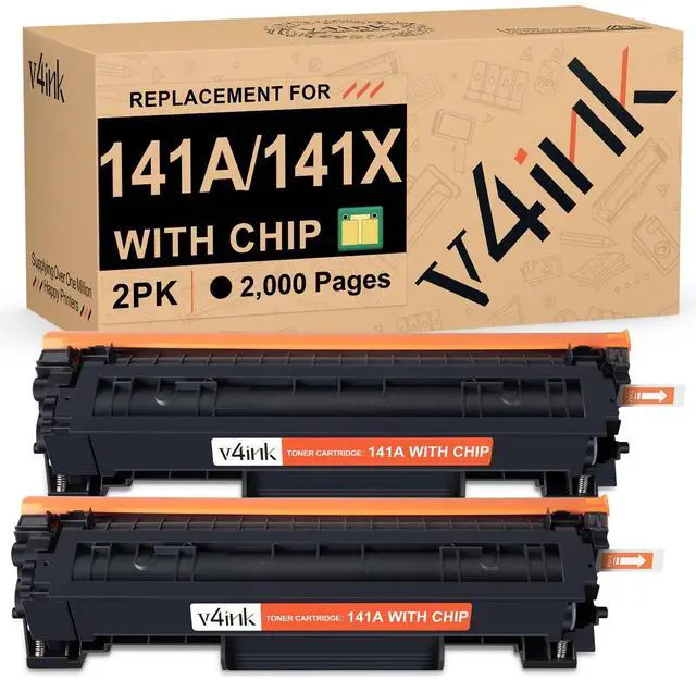 Includes 2 pack black v4ink 141X W1410X compatible toner cartridge with chip (High capacity version of HP 141A W1410A toner cartridge) ^^