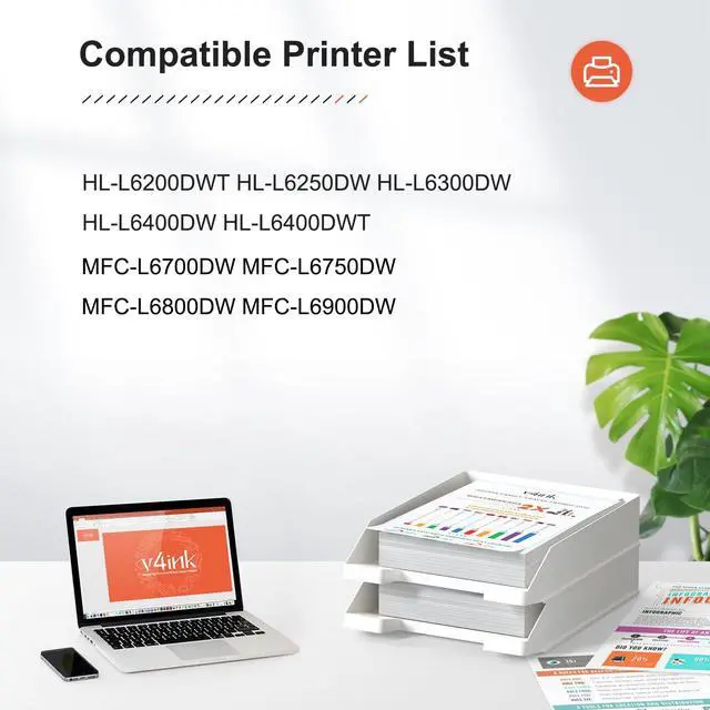Brother Printer: HL-L6200DW, HL-L6200DWT, HL-L6250DW, HL-L6300DW, HL-L6400DW, HL-L6400DWT, MFC-L6700DW, MFC-L6750DW, MFC-L6800DW, MFC-L6900DW ^^ The package includes 2-pack v4ink TN880 black compatible toner cartridge and 1 User Guide, with 12, 000 pages yield per cartridge based on 5% coverage (letter/A4). Please noted that our TN880 toners should work with drum DR820. ^^ 3-Step easy installation under the user guide or video on the Landing Page ^^
