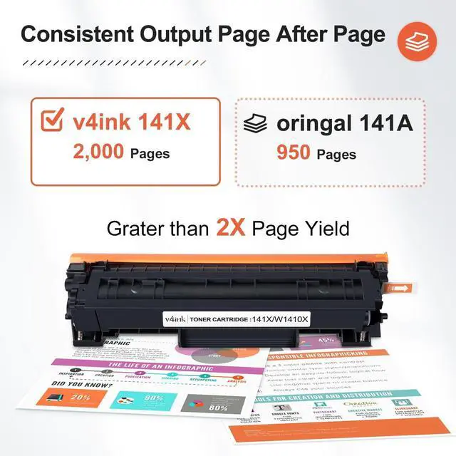 Includes 1 pack black v4ink 141A 141X W1410X compatible toner cartridge with chip (High capacity version of HP 141A W1410A toner cartridge) ^^