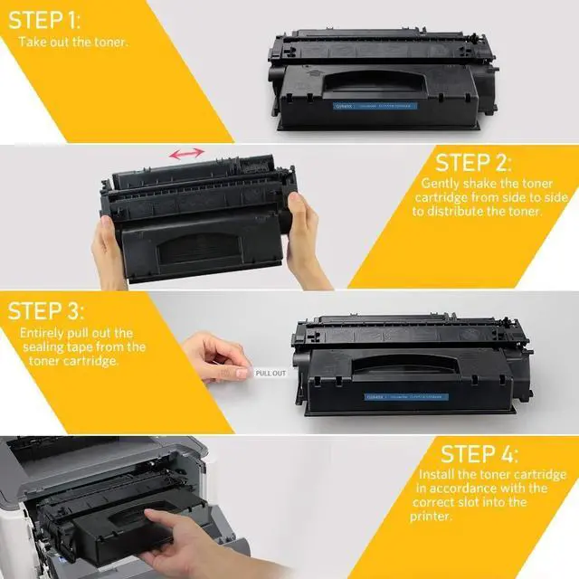 Includes 2 packs v4ink 53X Q7553X 49X Q5949X black toner cartridges and an install instruction. Easy to be recognized and install ^^
