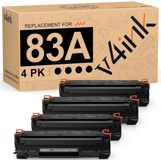 Includes 4 packs v4ink 83A CF283A black toner cartridges and an install instruction. Easy to be installed and recognized. ^^