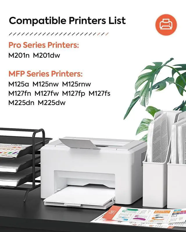 HP Printers: MFP M127fw M127fn M125nw M125a M201dw M201n M225dn M225dw series printers ^^ Every toner cartridge from us is under thoroughly tested and more than standard. Ensuring your reliable printing results in sharp text, bold blacks and crisp graphics ^^ Highest standards of quality, reliability and compatibility. No harm to your printer. V4INK 83A CF283A toner cartridge will be a perfect partner with your printer