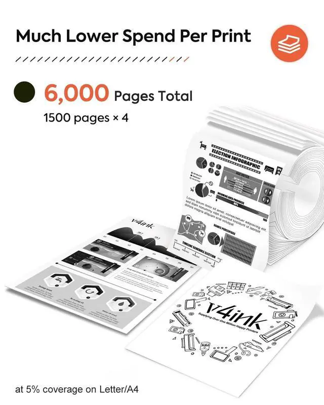 Print more and cost less: 1500 pages per toner cartridge based on 5% coverage (letter/A4) ^^ Suitable for