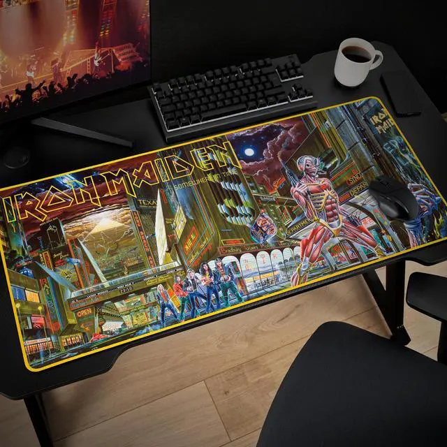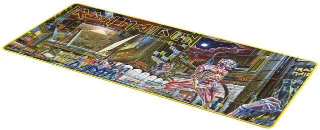 Immerse yourself in the world of the legendary band Iron Maiden with this reproduction of the cover of their sixth album, Somewhere in Time, in its entirety. Thanks to its exceptional print quality and XXL size, you can easily see the details of this iconic cover. Discover the officially licensed Iron Maiden XXL Subsonic mouse pad, designed for gamers and fans looking for an authentic and official product. With its generous dimensions of 35.4 x 15.7 inch, it offers a large playing surface for total freedom of movement. Our desk mat is made from extra-smooth micro-textured fabric to ensure that your mouse, whether optical or laser, glides smoothly and accurately.