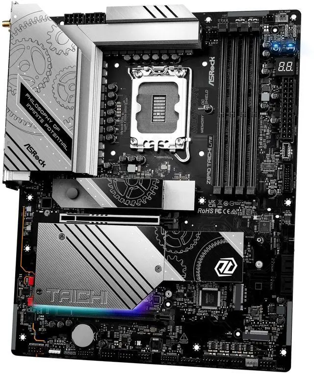 ASRock Z890 Taichi OCF (OC Formula) is geared toward record-setting overclocking, and is from the same category as the GIGABYTE AORUS Tachyon, and ASUS ROG Maximus Apex. Besides an overpowered CPU VRM and a boatload of features relevant to professional overclockers, this board has a 1-DIMM per channel memory configuration that provides the best memory overclocking headroom. There are quite a few enthusiasts who just want the pesky memory out of the way and focus on CPU overclocking. For this exact niche, ASRock developed a variant of the Z890 Taichi OCF with a DDR5 CAMM2 slot.