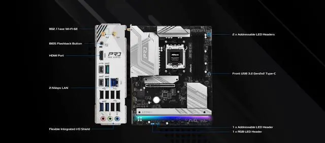 Premium Networking: WiFi 6E and Bluetooth provide cutting-edge wireless connectivity alongside 2.5G LAN for high-speed wired networking ^^