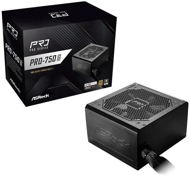 The ASRock PRO 750G Power Supply delivers efficient and reliable power for modern computing systems. With 80 PLUS Gold certification, it ensures optimal energy efficiency, reducing electricity costs and heat output. Fully compliant with ATX 3.1 and PCIe 5.1 standards, this power supply is prepared for next-generation components, featuring a native 12V-2x6 connector with dual-color design that safely delivers up to 450W for demanding graphics cards. The 120mm cooling fan provides quiet yet effective cooling, making it suitable for both gaming and workstation environments. Backed by a 3-year warranty, the PRO 750G offers peace of mind for builders seeking a balance of performance and value.