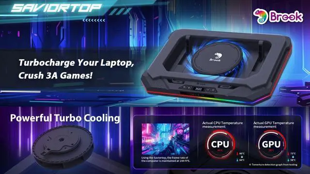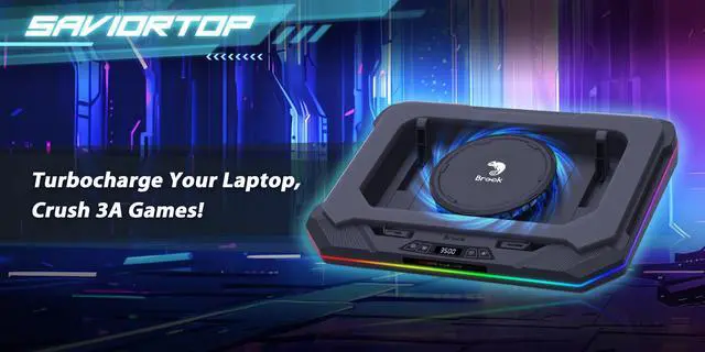 Brook Saviortop Gaming Laptop Cooler, IC Core Cooling Pad with Advanced Turbo Fan, Fast Cooling for Laptops 10-19in, Adjustable Speed, Touch Control, USB-C & USB-A Ports, Compact & Portable Design