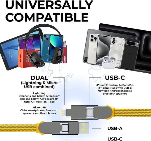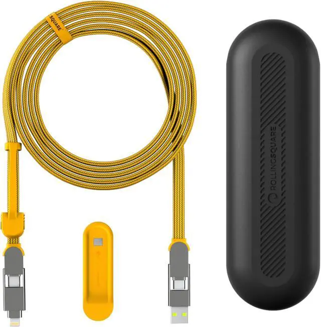 Rolling Square InCharge XL 300cm - USB C Charger Cable, Lightning Cable for Smartphone, Universal Cable Charger 6 in 1, USB Plug, Yellow, 100W