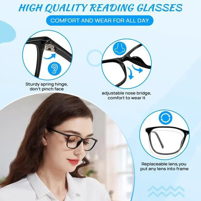 Fashionable and high quality materials:The classic square frame, lightweight spring-hinged temple legs ensure a comfortable fit, are sturdy, durable and weigh only 17g, making it easy to wear without any pressure.
