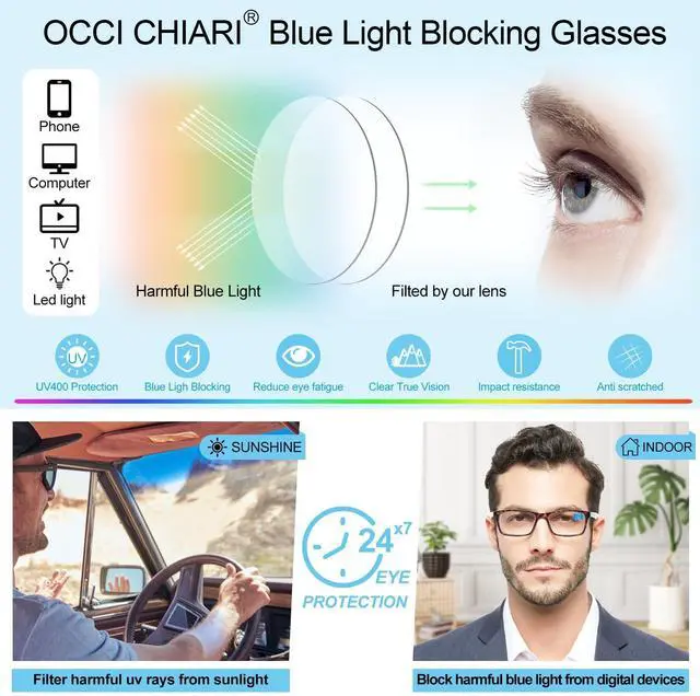 ^^ Lightweight and comfort: The eye glasses are clear and easy to Clean, The fit is so light on face (only 16g), so wearing them while you read or on my computer is very comfortable, you feel like you don't have any on; you can keep this readers in your wallet, The metal reading glasses hinge is durable and flexible. So it ensure a more comfortable wearing when there is a need by wider face or larger head. Perfectly choices for work and screen time. ^^ Suitable occasion--OCCI CHIARIs anti blue ray Glasses for male are perfect for daily, office, reading, computer / phone games, TV, etc. You can also wear it to party, walking, fishing, travel, etc, because the fashionable oversized anti-Blu-ray eyewear are always resistant to ubiquitous harmful blue light.