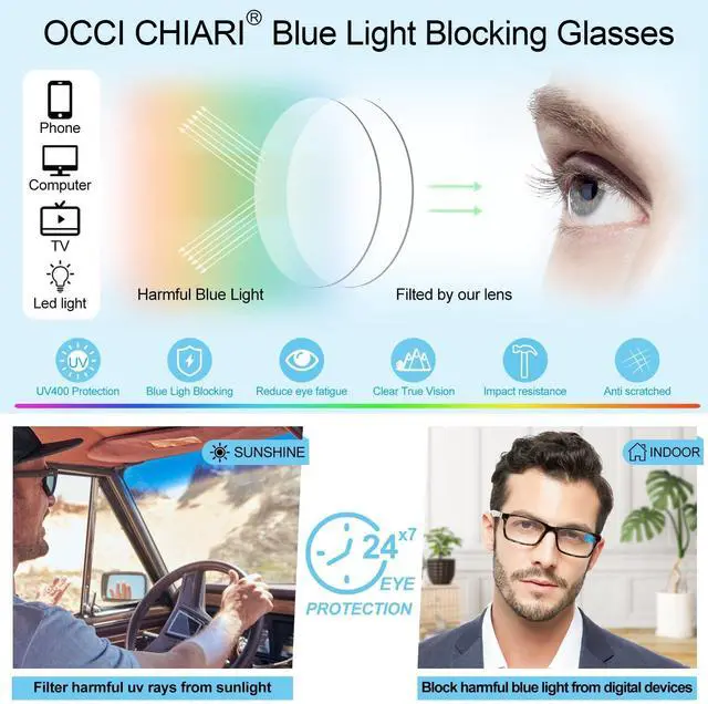^^ Lightweight and comfort: The eye glasses are clear and easy to Clean, The fit is so light on face (only 16g), so wearing them while you read or on my computer is very comfortable, you feel like you don't have any on; you can keep this readers in your wallet, The metal reading glasses hinge is durable and flexible. So it ensure a more comfortable wearing when there is a need by wider face or larger head. Perfectly choices for work and screen time. ^^ Suitable occasion--OCCI CHIARIs anti blue ray Glasses for male are perfect for daily, office, reading, computer / phone games, TV, etc. You can also wear it to party, walking, fishing, travel, etc, because the fashionable oversized anti-Blu-ray eyewear are always resistant to ubiquitous harmful blue light.