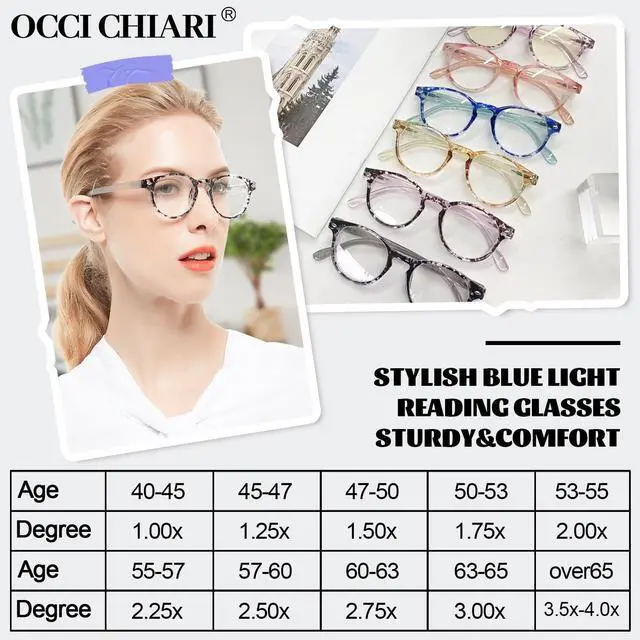 OCCI CHIARI Blue Light Reading glasses Women 2.0x Computer Readers for Petite Face(1.0 1.25 1.5 1.75 2.0 2.25 2.5 2.75 3.0 3.5 4.0 5.0 6.0)