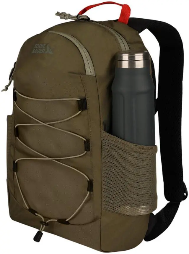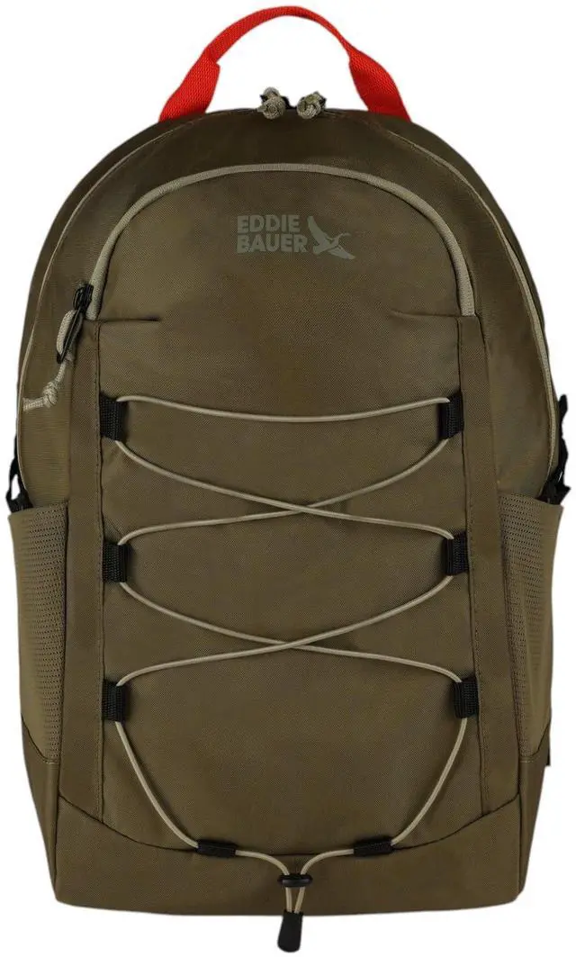 The Eddie Bauer Varsity Backpack (22L) is designed for versatility, comfort, and smart organization, making it perfect for, work, travel, or daily commutes. Built for secure storage, this compact yet spacious backpack includes a secure zip pocket for personal items, two stretch mesh water bottle pockets, and an adjustable front bungee system for extra carrying capacity. Inside the main compartment, a padded laptop sleeve ensures tech protection, while an organization panel keeps notebooks, accessories, and essentials neatly arranged. Ergonomic padded shoulder straps and a breathable back panel provide all-day comfort, making this backpack ideal for s, professionals, and on-the-go adventurers.